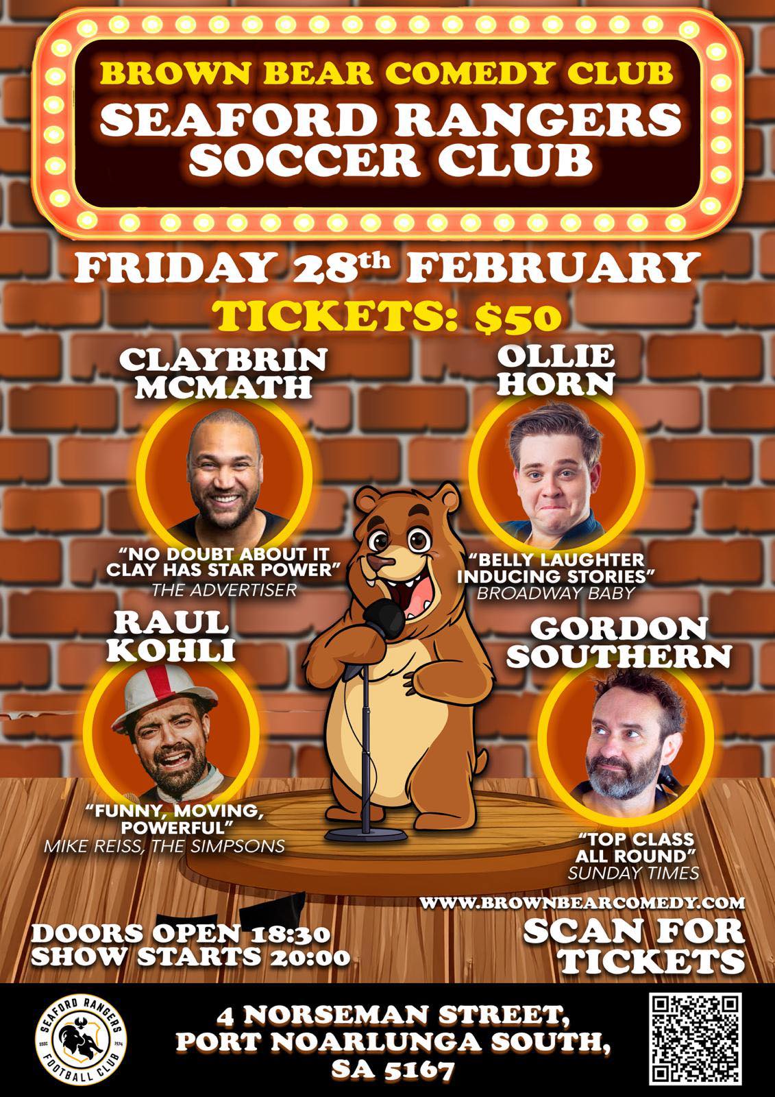 BROWN BEAR COMEDY AT Seaford Soccer Club