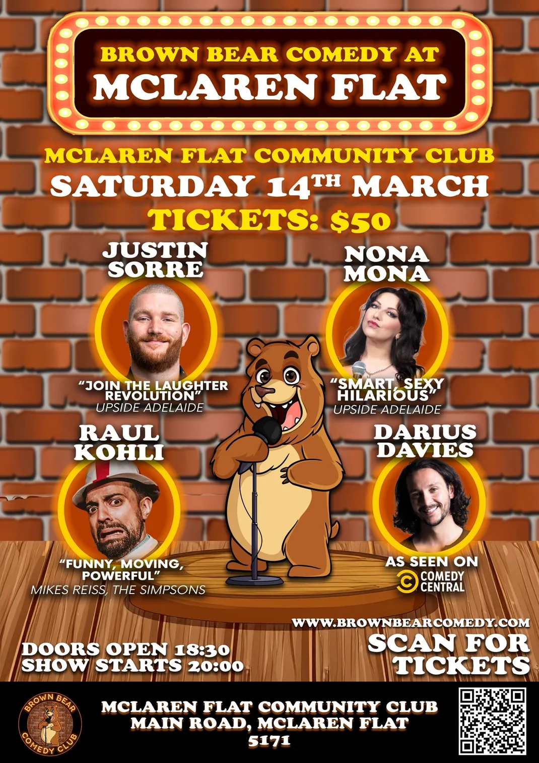 BROWN BEAR COMEDY AT McLaren Flat